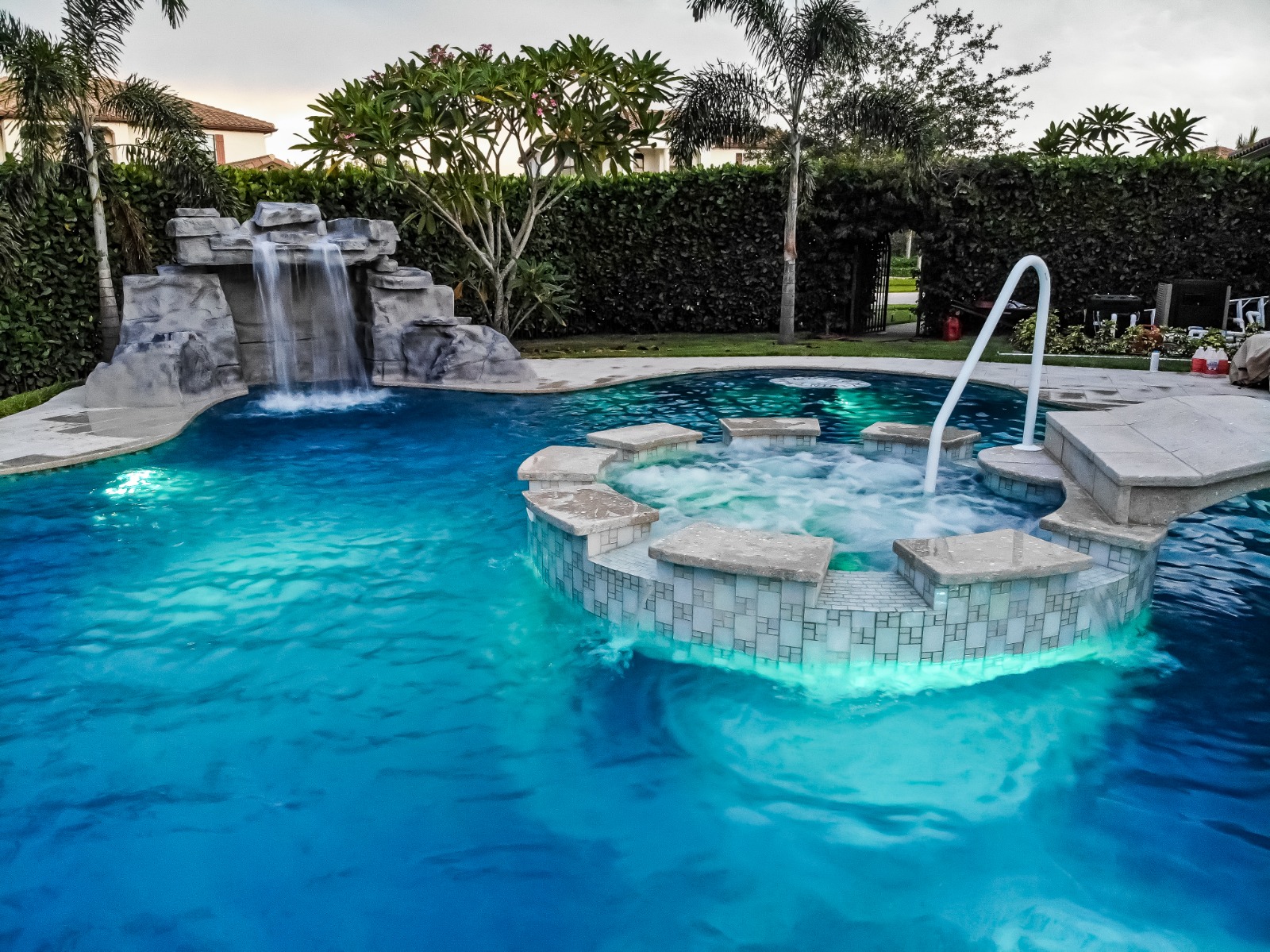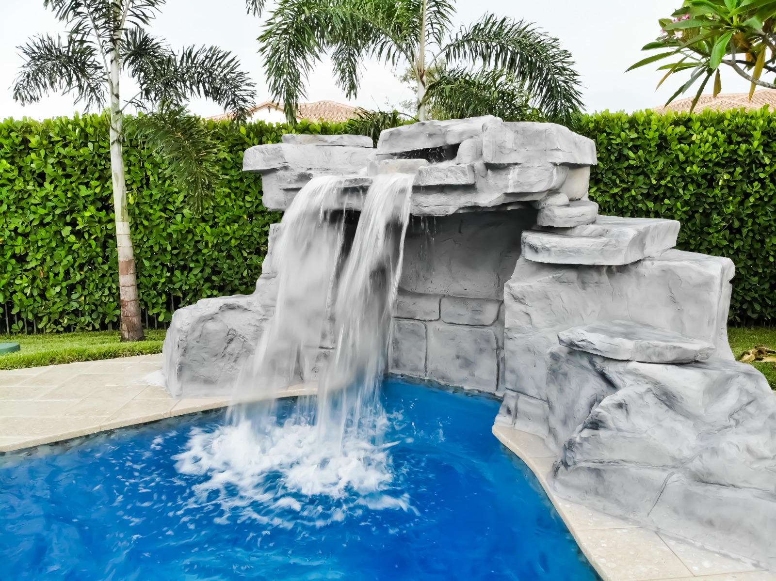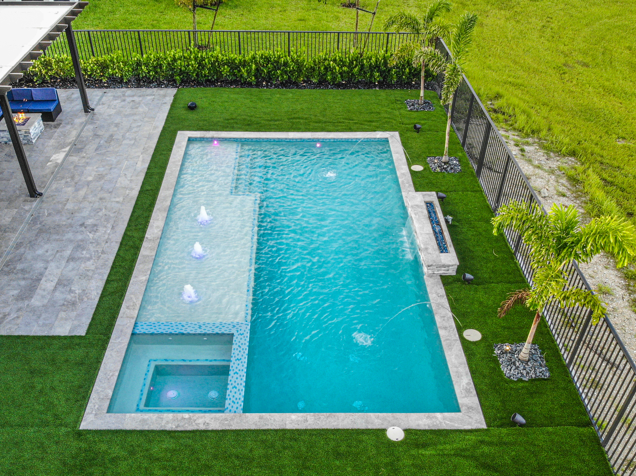 Enhance your pool with soothing waterfalls and modern water accents.