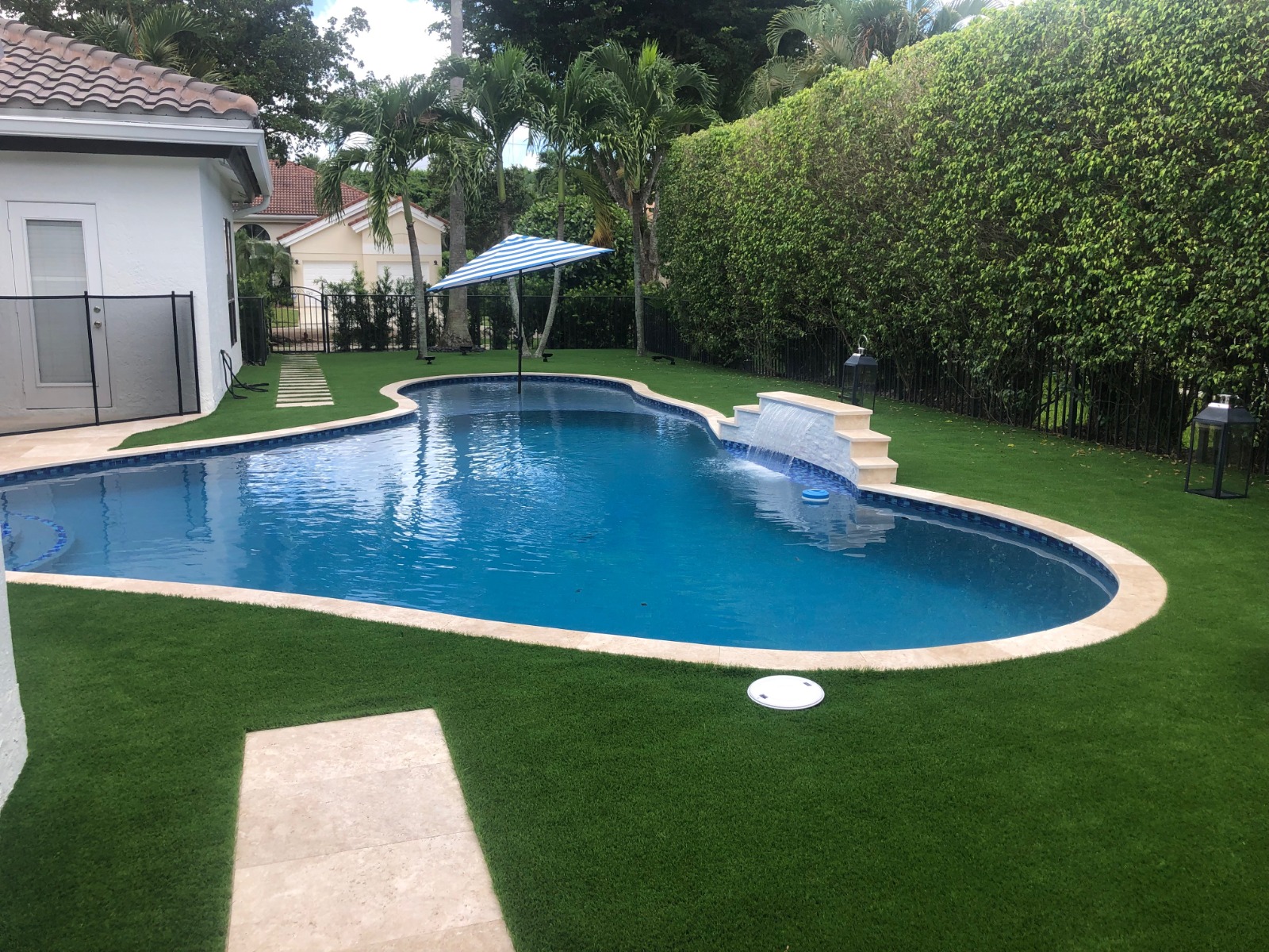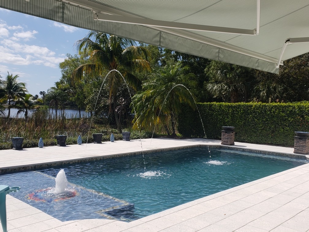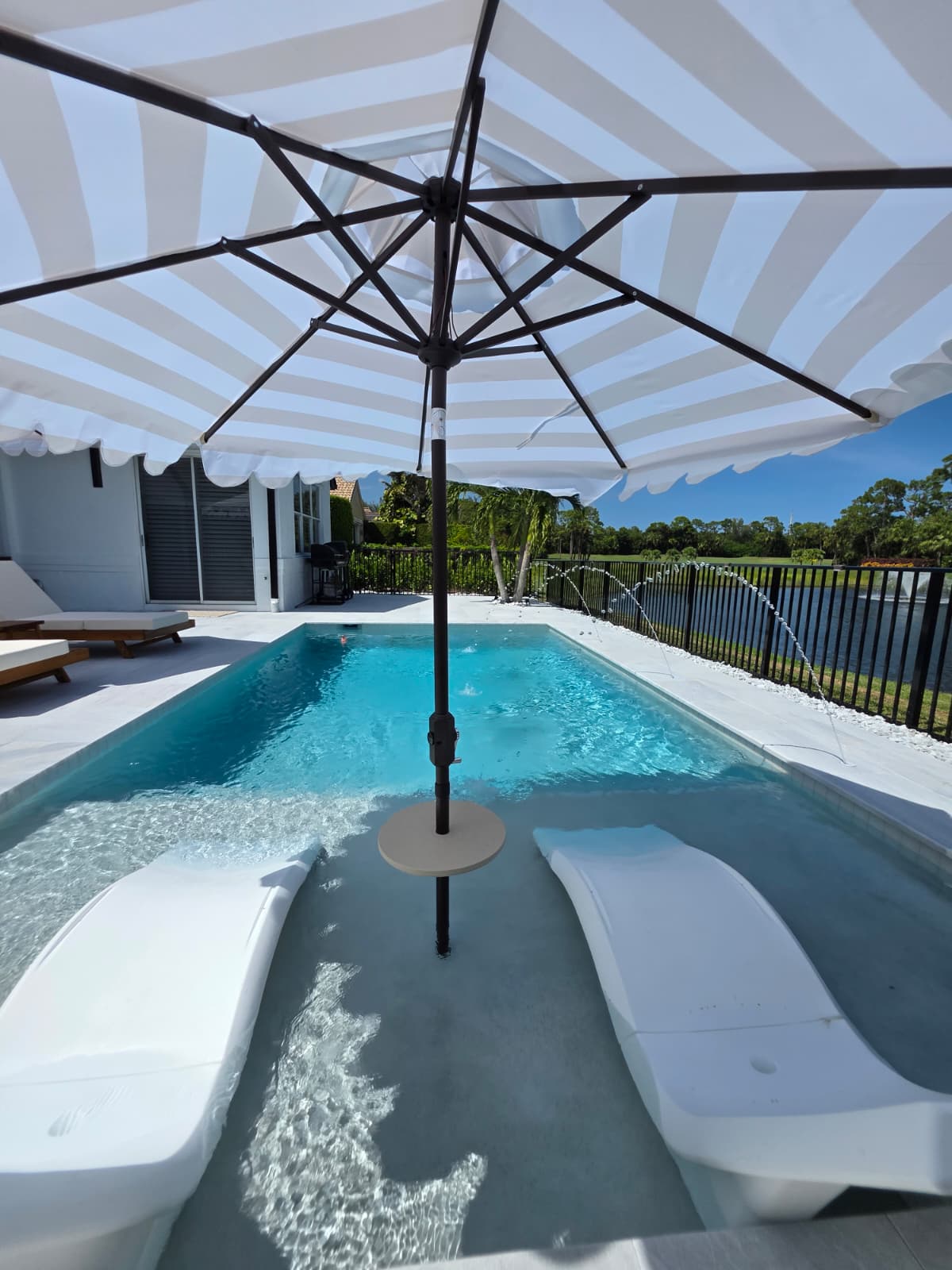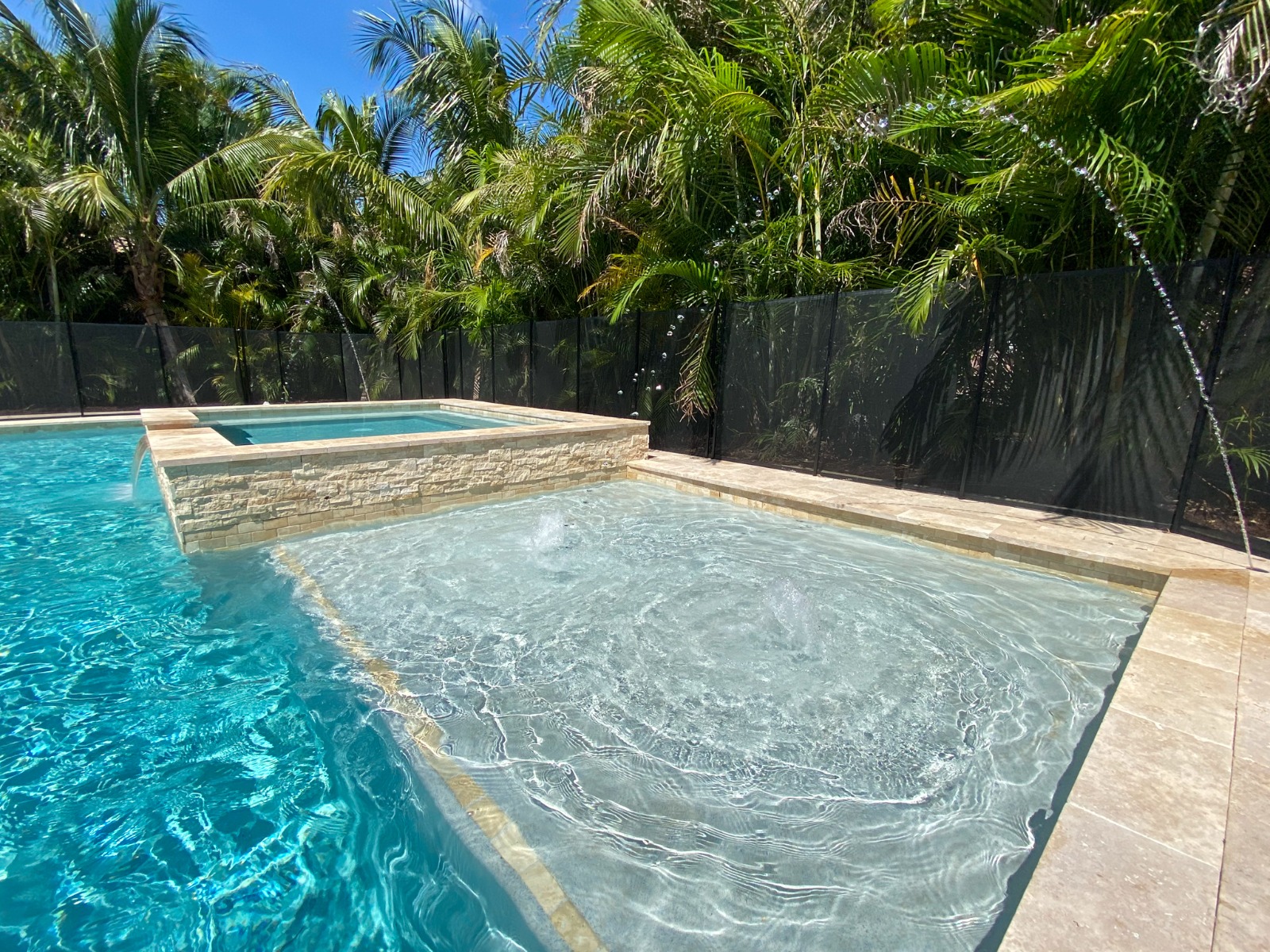 Enhance your pool with soothing waterfalls and modern water accents.